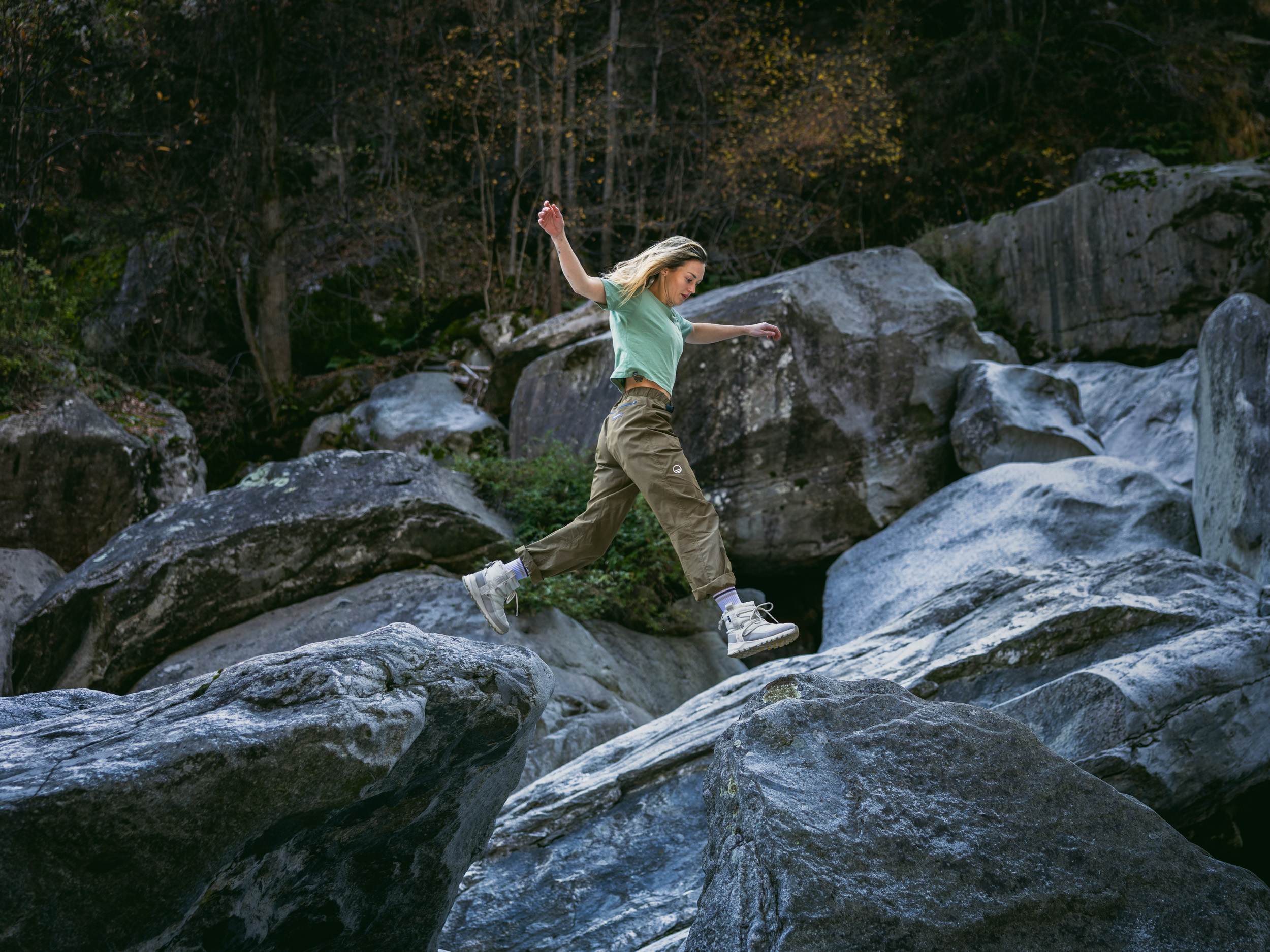 Janja Garnbret climbing in Ticino, Switzerland in November 2025. Photo taken on an assignment for Red Bull.